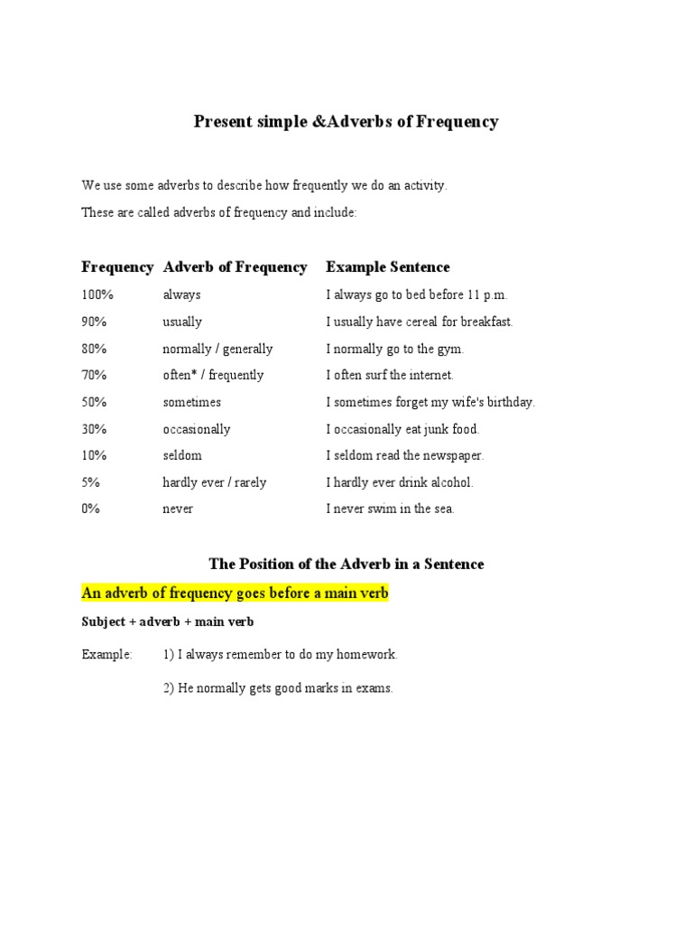 I also tell you where to place the adverb or expression in the sentence. Knowing adverbs of frequency is a great way to be able to further explain a situation within your conversation, as well as adding a whole host of new words to your vocabulary. Yesterday policemen arrested a here are some adverbial phases that express frequency. With sentences using the verb 'to be', the adverb of frequency comes after the verb. The incubator turns each egg hourly.